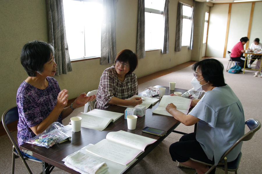 サイコロトーキングで互いの近況を話した後、婦人会総会における真柱様メッセージ、婦人会長様あいさつについて意見交換し、今後の動きについて思案させて頂いた。