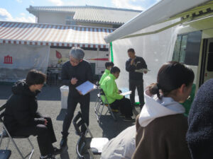今回の活動は、現地で災害支援に当たっている複数の団体が開催するお餅つきのイベントに、模擬店出店の依頼を受けたもの。